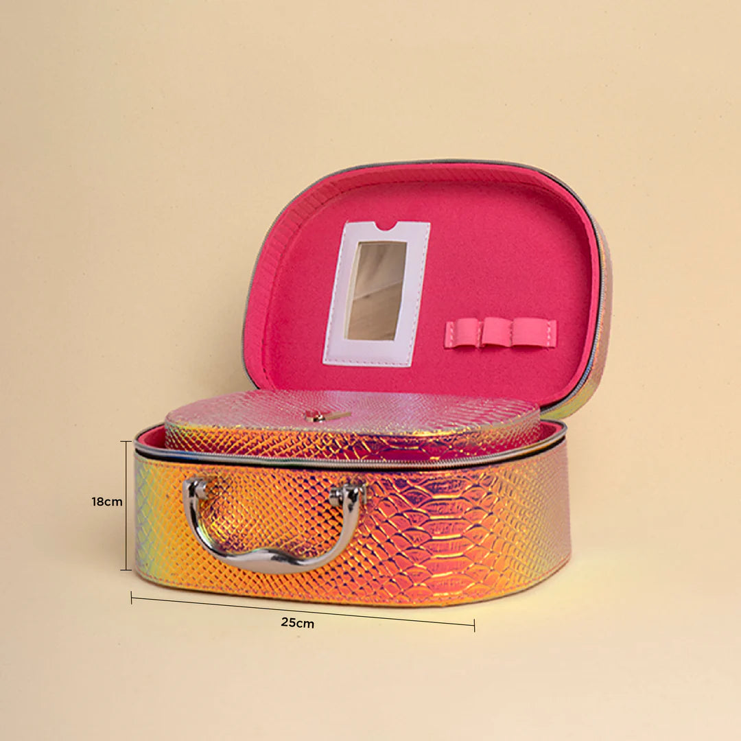 Organiza y transporta tus esenciales de belleza con estilo. Esta maleta de maquillaje pequeña es ideal para llevar tus productos favoritos a donde vayas, ya sea un viaje corto, una sesión de maquillaje o simplemente para tener todo a mano de forma práctica y segura.